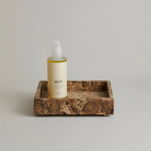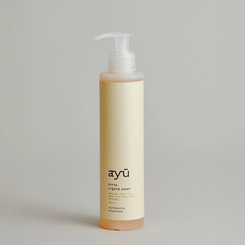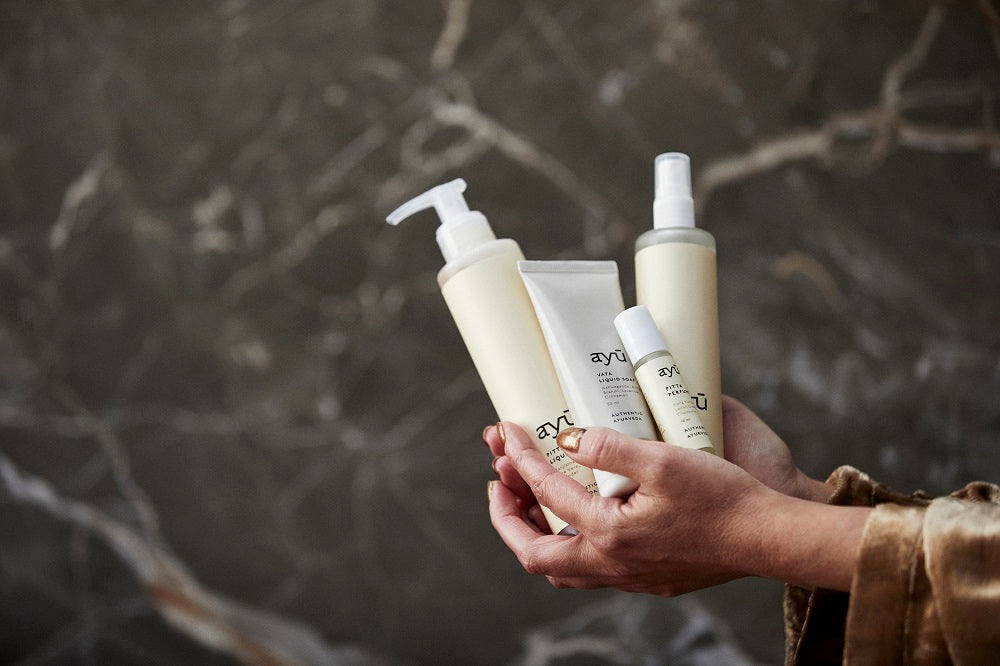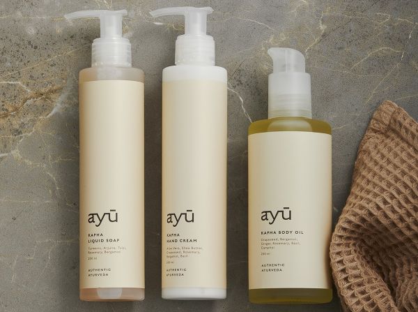 ayú er skabt med inspiration fra den over 5.000 år gamle ayurvediske filosofi. Alle produkter indeholder nøje udvalgte æteriske olier og er udviklet med fokus på de tre livsenergier – Vata, Pitta og Kapha. Produkterne giver huden naturlig glød og blødhed, trænger hurtigt ind og gør selvpleje til en sanselig oplevelse.